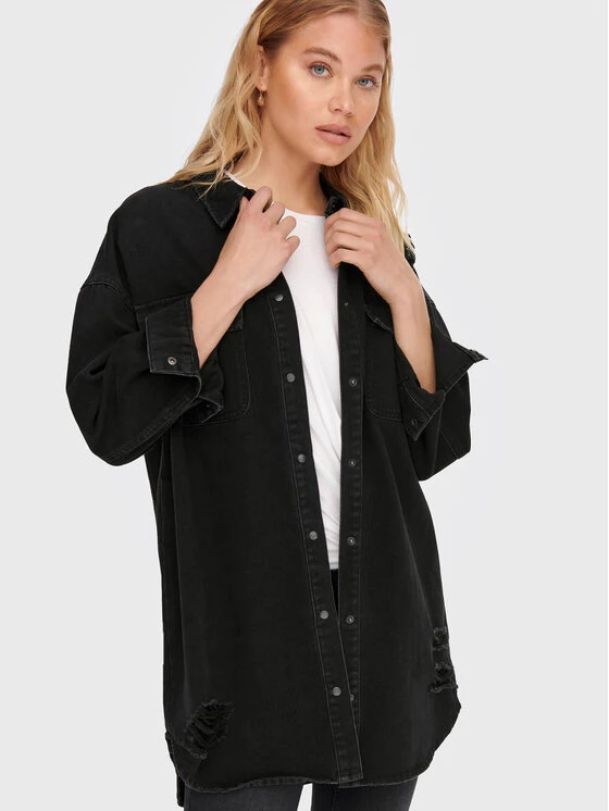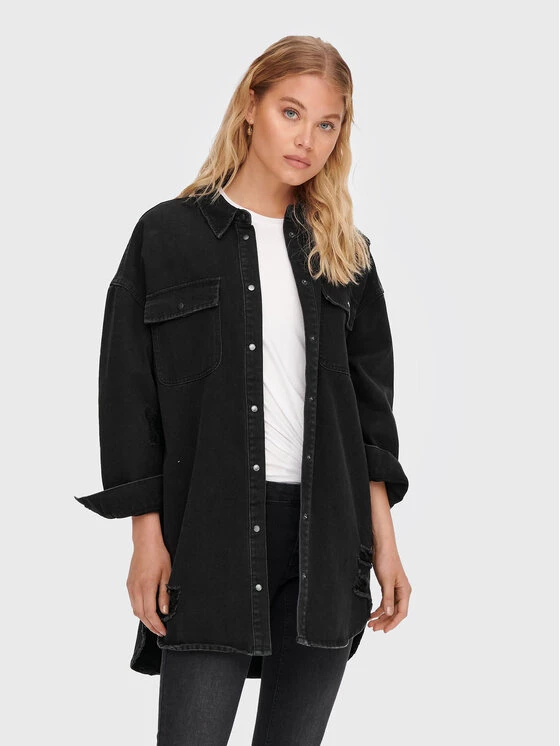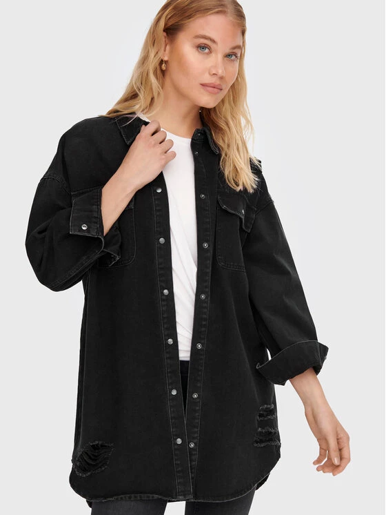 ONLY Γυναίκες Casual Πουκάμισα Τζιν πουκάμισο Kasia 15265390 Μαύρο Relaxed Fit