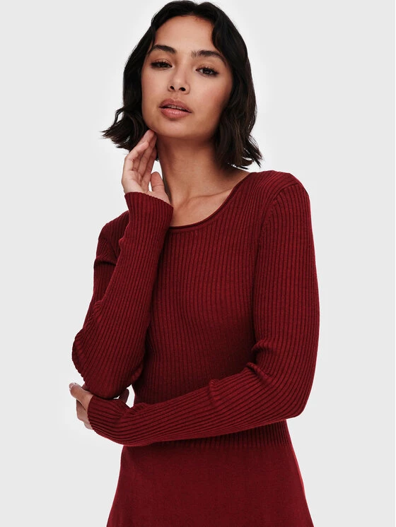 ONLY Γυναίκες Πλεκτά Φορέματα Φόρεμα υφασμάτινο Alma 15185761 Μπορντό Regular Fit
