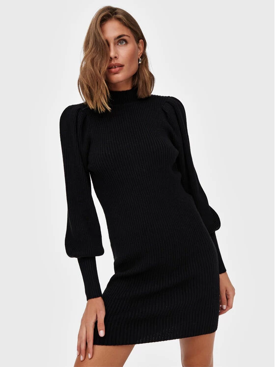 ONLY Γυναίκες Πλεκτά Φορέματα Φόρεμα υφασμάτινο Katia 15232502 Μαύρο Regular Fit