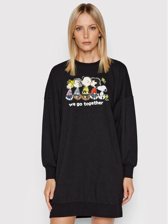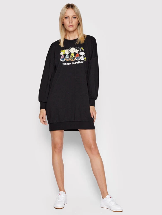 ONLY Γυναίκες Πλεκτά Φορέματα Φόρεμα υφασμάτινο Peanuts 15255748 Μαύρο Oversize