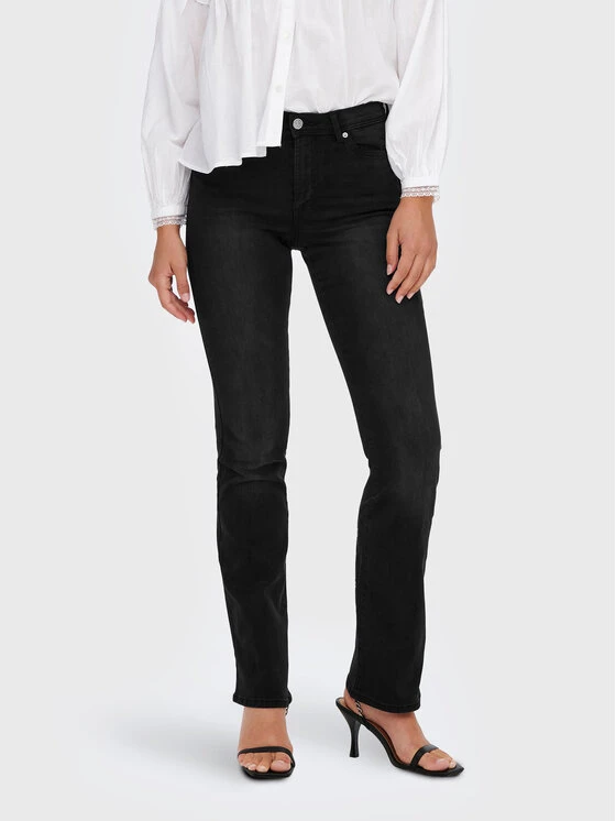 ONLY Γυναίκες Straight Leg Τζιν Wauw 15230476 Μαύρο Flare Fit